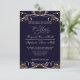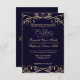 Wedding invitation with gold border on royal blue background, give elegant and glamour impression for wedding invitation.