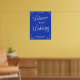 Royal blue wedding reception sign print with white swirl decor and customizable text - you can add bride's and groom's name and wedding date. Dimensions of the sign print (poster) are 18 inches by 24 inches.