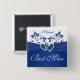 This personalized royal blue and white floral Best Man button with a PRINTED royal blue ribbon and a pair of PRINTED FAUX glitter and diamond jewel joined hearts brooch on it that matches the wedding invitation shown below. The text is customizable and so is the shape and size of the button. ****PLEASE note that if you change the shape that text may get cut off. It will print as it appears on your monitor, and you must allow adequate space around the edges, so do NOT run text right up to the edge. If you need anything changed, please email niteowlstudio@gmail.com.