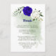romantic royal blue and white flowers and green leaves botanical details enclosure card.