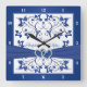 Royal Blue, White Floral Heart Happily Ever After Square Wall Clock