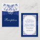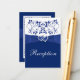 This royal blue and white floral wedding reception enclosure or insert card has a blue PRINTED ribbon and bow with a pair of PRINTED diamond jewels and blue FAUX glitter joined hearts on it that matches the wedding invitation shown below. You can also customize it to be a directions card, a gift registry card, a wishing well card, an accommodations card, or a wedding website or other information card by changing the customizable text. If there are any other matching items you require, please email your request to niteowlstudio@gmail.com.