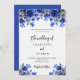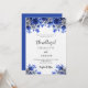 A white background, decorated with blue and white flowers. Personalize and add your names and details.