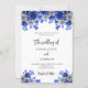 A white background, decorated with blue and white flowers. Personalize and add your names and details.
