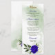 royal blue white flowers greenery wedding menu