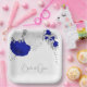 Romantic royal blue & white flowers with silver leaves botanical wedding paper plate.