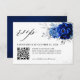 Elégante carte RSVP de mariage bleu royal blanc argent avec code QR avec élégant bouquet de bleu royal, marine, argent, blanc pur bourgeons de fleurs roses et sauge vert eucalyptus feuilles. Veuillez me contacter pour toute aide sur la personnalisation ou si vous avez besoin d'un autre produit avec ce design.