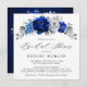 Royal Blue White Silver Metallic Bridal Shower Invitation
