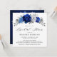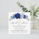 Elegant royal blue white silver theme bridal shower Invitation featuring elegant bouquet of royal blue, Navy, silver, pure white colour rose flowers buds and sage green eucalyptus leaves. Please contact me for any help in customization or if you need any other product with this design.