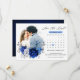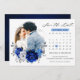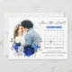 Elegant royal blue white silver theme calendar save the date card featuring elegant bouquet of royal blue, Navy, silver, pure white colour rose flowers buds and sage green eucalyptus leaves. Please contact me for any help in customization or if you need any other product with this design.