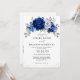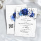 Royal Blue White Silver QR Code Floral Wedding Invitation