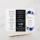 Elegant royal blue white silver theme wedding program featuring elegant bouquet of royal blue, Navy, silver, pure white colour rose flowers buds and sage green eucalyptus leaves. Please contact me for any help in customization or if you need any other product with this design.