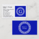 Royal Blue Wt Greek Key Rnd Frame Initial Monogram Business Card