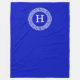 Royal Blue Wt Greek Key Rnd Frame Initial Monogram Fleece Blanket