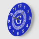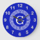 Royal Blue Wt Greek Key Rnd Frame Initial Monogram Large Clock