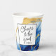 Royal Blue and Yellow Gold "Cheers to the Grad" elegant paper cup. Alcohol ink digital design. Personalize with year. © Kimbellished, LLC