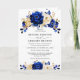 Royal Blue Yellow Gold Metallic Floral Wedding Invitation