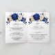 Elegant royal blue gold theme wedding Invitation featuring elegant bouquet of royal blue, Navy, gold, yellow colour rose flowers buds and eucalyptus leaves. Please contact me for any help in customization or if you need any other product with this design.