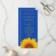 Yellow sunflower flower and royal blue personalized affordable wedding program. The design features a bright and cheerful yellow sunflower on a royal blue background. Simple and elegant floral design. NOTE: This is a flat printed design without any raised or 3D embellishments. To change the text, use the personalize options. Or, for more extensive changes (font, font size, font colour, text placement), choose customize it. You can even change the royal blue background colour if you want. This is a great inexpensive wedding program for a wedding in the summer or fall / autumn or a wedding with a yellow sunflower flower theme.