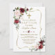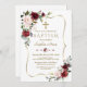 Royal Burgundy Blush Floral Gold Frame Baptism Invitation