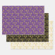 Royal Coronation 2023 Ogee Pattern Wrapping Paper for celebrating the Royal Coronation of King Charles III and Queen Camilla. The 3 sheets of wrapping paper have an attractive Ogee repeat pattern with a gold colored theme. Each sheet has a different colored background: black, white and purple.