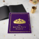 We've repurposed this guest book into a one-of-a-kind scrapbook, your one of a kind that is, once you personalize it. Exterior is shown with a royal crown print and a in gilded real gold foil. You don't have to be a royal to use it! Preselected text for your name or title, but you can change it. The back and spine are the same colour foil. Inside we've chosen for you unlined paper. Choose gold foil, rose gold or silver foil. Paper choices between unlined white, solid black [as shown] or lined white. Exterior cover is shown in dark Purple. Customize this item to any colour you wish and remember to personalize your name/title and remember to personalize the title on the book's spine and the year on the back!