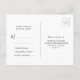 This RSVP postcard is a real stunner! The front has a beautiful emerald green background with elegant gold floral details. It says 'RSVP' in a stylish way, followed by the couple's names and the wedding date. The back is simple and white, with space for you to RSVP by a certain date. You can easily choose 'Accepts' or 'Declines' and let us know how many guests will be joining us. There's also a spot for your return address. It's all very elegant and easy to use.