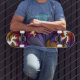 royal floral skateboard for you to show off your cool tricks.