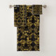 Royal Gold & Black Damask Floral Pattern Monogram Bath Towel Set