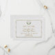 Symbol of elegance, abundance and loftiness! Unique card design featuring a Royal faux gold foil crest, a delicate frame, olive branches with a white flower on a white textured background. Use Customize tool to add your info. For matching items, please, visit my Royal Gold Crest Lush Greenery Wedding Collection.