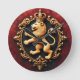 A luxurious seamless repeating heraldic pattern featuring grand crests with crowned lions rampant and double-headed eagles, outlined in burnished gold leaf over a deep burgundy velvet-textured background. Each crest is spaced with delicate fleur-de-lis motifs and thin gold diamond lattice lines, with subtle aged parchment warmth bleeding through the fabric texture to create a centuries-old tapestry look.