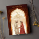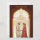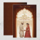 Announce your special day with this elegant and traditional Indian wedding "Save the Date" card. The beautiful design features a hand-painted illustration of a regal Indian couple framed by a stunning, intricately carved archway. The rich, earthy tones of deep brown and maroon create a warm and inviting feel, while the gold accents add a touch of luxury. This customizable template is perfect for a Hindu or South Asian wedding, with ample space to personalise the names, date, and location. Ideal for a "Save the Date" or a digital invitation, this card beautifully captures the essence of a timeless love story.