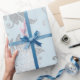 Royal Pastel Blue Silver Roses Shiny Wrapping Paper