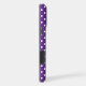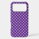 White polka dots on a royal purple background.
