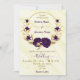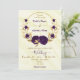 royal purple flowers gold wreath invitation