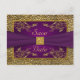 This purple and gold floral save the date post card has a purple FAUX ribbon, gold medallion, and FAUX gold bumpy texture that matches the wedding invitation shown below. If you require any other matching items in this design, please email your request to niteowlstudio@gmail.com.