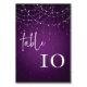 Elegant Royal Purple String Lights Wedding Table Number. The text type and colour can be changed vis the edit menu. The same design is on the back and the number will update simultaneously as you change it. Add each number you require to your cart separately.