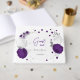 Romantic royal purple & white flowers with silver leaves botanical wedding guest book