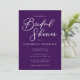 This royal purple bridal shower invitation features beautiful white typography on a solid deep violet card for an evening party in the winter. Minimalist script and a bold colour makes your bridal event invite pop and stand out from the crowd.