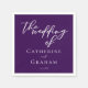 This royal purple wedding napkin features beautiful white typography on a solid deep violet for an evening ceremony in the winter. Minimalist script and a bold colour makes your reception decor pop and stand out from the crowd.