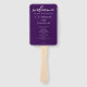 This royal purple wedding program hand fan features beautiful white typography on a solid deep violet for an evening ceremony in the winter. Minimalist script and a bold colour makes your favours pop and stand out from the crowd.
