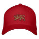 Fits well due to elastic edging, not adjustable. Good qualty material. Good quality embroidering. Subtle lettering (white on beige) just as my wife likes.