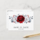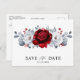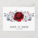 Elegant royal red white silver theme wedding save the date postcard featuring elegant bouquet of royal ruby red, crimson, silver, pure white colour rose flowers buds and eucalyptus leaves. Please contact me for any help in customization or if you need any other product with this design.