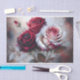 Dramatic rose composition featuring deep crimson and blush blooms. Transform vintage furniture with this hyper-realistic floral design. Museum-quality detail captures light, shadow, and delicate petal textures.