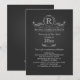 Announce and celebrate your graduation with this stunning design. The black background features a silver motif with a circular window for your monogram.