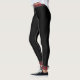 Chic and cheerful leggings with a classic tartan twist. There's a pattern of the famous Royal Stewart, or Stuart, red tartan plaid at the waist and ankle on a black background.
