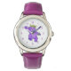A purple teddy bear princess dressed up in a lovely yellow jewelled crown and pink, blue and green flowers is dancing across this fun watch for a little girl. Original design by Anura Design Studio.