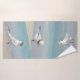 It was advertised as NAVY blue and the color sent was greenish blue. I am disappointed in this product. Quality and printing are great as are all my other orders. As you can see in picture the tea towel on right is perfect, hand towel not so much! Print was awesome and just as ordered