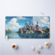 Un beau royaume balnéaire et ses tours dômes se reflètent dans les eaux tranquilles du matin. Derrière, il y a un ciel bleu vif et des montagnes. Un pont en pierre enjambe l'eau, permettant aux résidents et aux visiteurs de se rendre sur le terrain voisin.