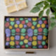 This colourful patterned tissue paper is perfect for wrapping up gifts for fans of role-playing and fantasy board games. It features illustrations of different multi-sided dice in green, purple, orange, red and yellow set against a black background.